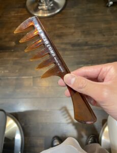 メッシュコームとは、普通のコームに比べて目の荒いコームのことを言います!主に仕上げの際に使用します!