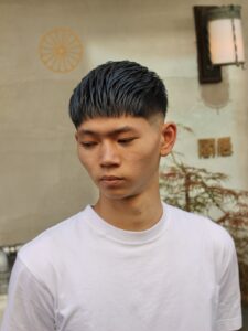 ピチッと揃った前髪が特徴的なスタイルです!このままでも充分カッコいいですが、バリュエーションは様々です!
