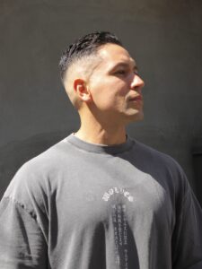 クルーカットとは、「スポーツ刈り」に近いフェードスタイルで、全体的に縦長のシルエットでトップを寝かせて前髪を立ち上げるスタイルです!