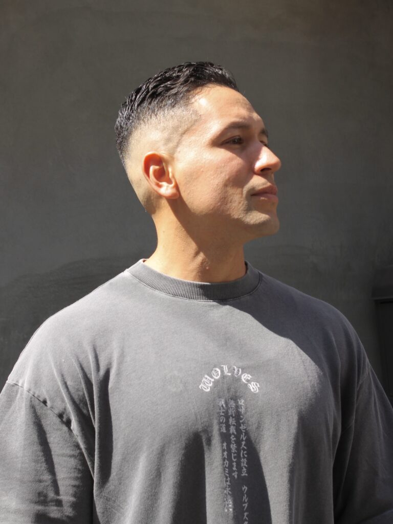 クルーカットとは、「スポーツ刈り」に近いフェードスタイルで、全体的に縦長のシルエットでトップを寝かせて前髪を立ち上げるスタイルです!